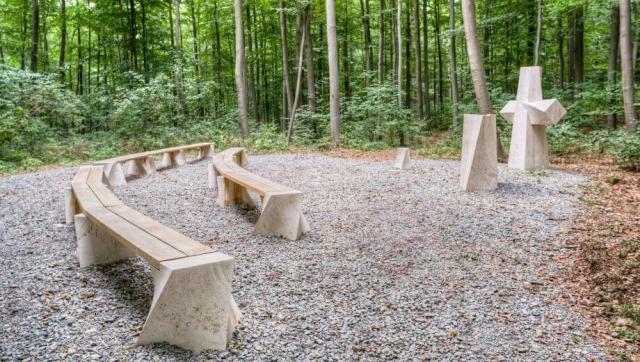 Der zentrale Andachtsplatz, der leicht zugänglich ist und über Bänke verfügt, lädt zum Verweilen ein. Ein Kreuz, ein Rednerpult und ein Urnenstein befinden sich hier und bieten den perfekten Rahmen für den Beginn von Trauerfeiern und Gedenkgottesdiensten. Der Urnenstein wurde von einem Bad Berkaer Steinmetzbetrieb geschaffen. Nach der Eröffnung wird das FriedWald-Gelände 99 Jahre lang als Friedhof nutzbar sein. Das heißt, bis zum 31. Dezember 2117.
