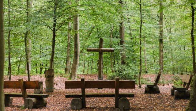 Die zentral gelegene Andachtsstelle befindet sich in unmittelbarer Nähe des Eingangs zum leicht zugänglichen Bestattungswald. Er ist mit einem Holzkreuz und Holzbänken ausgestattet und schafft einen Ort, an dem Bestattungen und Gedenkfeiern stattfinden können. Das FriedWald-Gelände wird nach der Eröffnung 99 Jahre lang als Friedhof zur Verfügung stehen. Das heißt, bis zum 31. Dezember 2110.