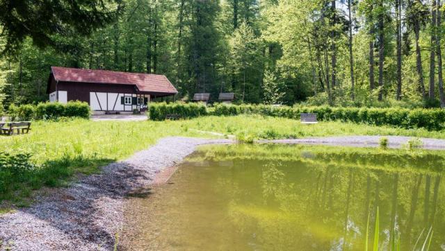 Die Hütte kann im Winter isoliert werden und liegt direkt gegenüber einem schönen Teich mit Sitzgelegenheiten. Etwas höher gelegen befindet sich ein Andachtsraum mit einem Kruzifix, Holzsitzen und einem Außenrednerpult für Ihre Gedenk- und Trauerfeiern. Nach der Eröffnung wird das FriedWald-Gelände 99 Jahre lang als Friedhof nutzbar sein. Das heißt, bis zum 31. Dezember 2107.