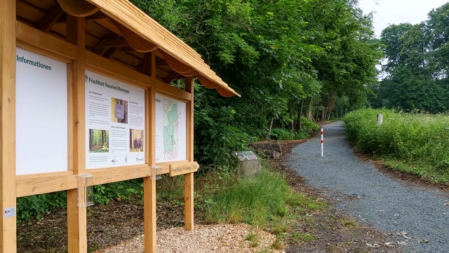 Erreicht man den Parkplatz findet man im Waldgebiet des Friedhofs Neuwied-Monrepos eine Informationstafel. Dort erfährt man alles Wissenswerte über die FriedWald-Idee und die Waldkarte hilft bei der Orientierung. Ein kleiner, schöner Weg führt hinauf in den Wald. Am Eingang des Waldes gibt es eine Toilette und einen überdachten Treffpunkt für Veranstaltungen.