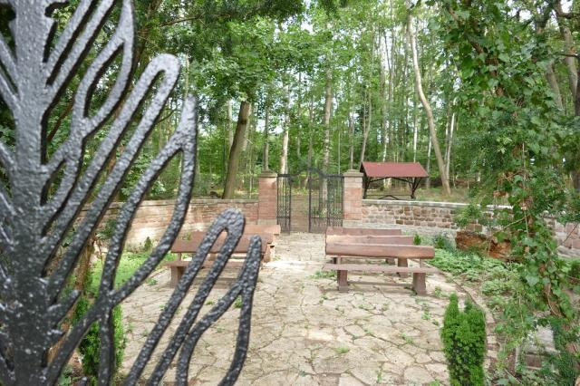 Der historische und denkmalgeschützte Andachtsplatz ist ein in sich geschlossener, von Eichenlaub überdachter Rückzugsort. Im Inneren laden Bänke zum Ausruhen und Nachdenken ein. Der damalige Planer und Gestalter wählte bewusst einen Hügel als Standort für die Andachtsstätte. Von oben kann man den Klosterteich des alten Zisterzienserklosters Marienthal sehen.