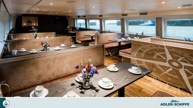 Während der Rückfahrt verbleibt das Blumengesteck am Horizont zu sehen. Im Salon werden anschließend auf Wunsch heiße und kalte Getränke gereicht. Die gesamte Fahrtzeit beträgt ca. 2 Stunden.